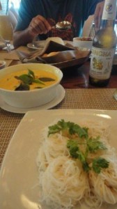 今回、色んなところでタイ料理を食べたけど、ここのホテルが一番美味しかった。すごくさっぱりしていてあんまり辛くなく、毎日食べても飽きないぐらい。やはりシェフはタイ人の女性で、色んなエリアのタイ料理があるのでバリエーションも豊富。写真は蟹のイエローカレーにバーミセリをお素麺みたいにつけて食べるもの。これは結構辛かったけど、一番気に行ったタイ料理。