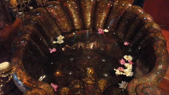 ゴージャスなフラワーバス。でも、今回はなぜか見学だけだった。次回は三人で入ろうね、とか約束して(笑)。