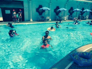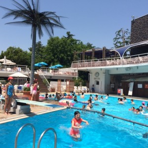 やっとダディがお休みになり、ニューオータニの温泉プールに連れてってもらいました。