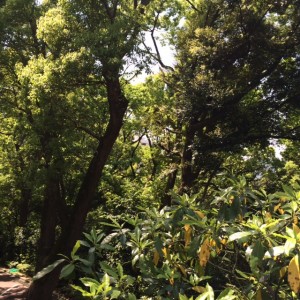 ジャグジーからはこんな緑が。ここはお堀っぱた。都心ながら緑が深いんです。