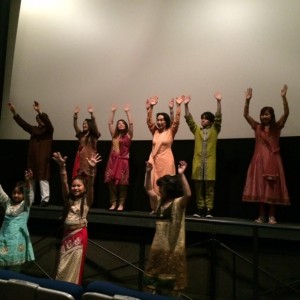 マサラ上映前、先生とダンサーたちによるお手本が披露され、みんなも練習。踊りに備えます。