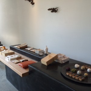 古い家屋をシンプルモダンに改装した中にはまず和菓子コーナー。