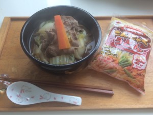鍋の〆に本物のうどんを入れて食べている家族を後目に、翌日の昼、そのお出汁を使って肉うどんを作ってみました。