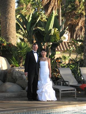 これがご主人のトムさん。いい男だろ~?(って、オバチャンかい)プールサイドでタキシードとマーメイド…