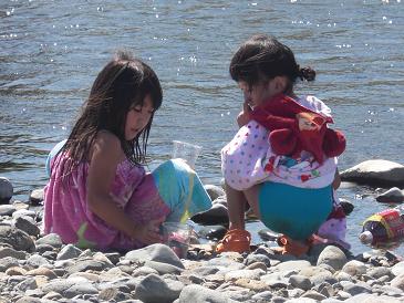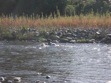 ここ、福生南公園付近の川は流れも急じゃなく浅瀬。子供にはちょうどいいプールでした。それにしても川…