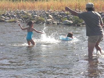 これはウリとトコが浮き輪に二人乗りして流れているところ。下手にダディが待ち構えているので安心です…