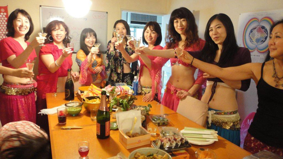 宴もたけなわ、暗くなってきたところでプロのベリーダンサーKahina登場!私の格好はジュリーのTo…