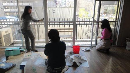 ベランダまわりはえりちゃんと百合さんが担当。かとちゃんは貯め込み過ぎた紙袋の捨てるべく作業中。紙袋も…