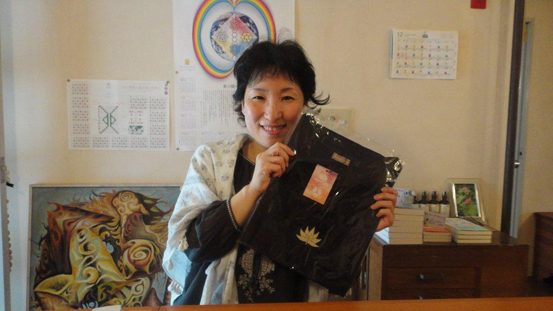 おめでとうございます~❤ 記念品のロータスTシャツを持つ稲毛里子さん。かなりミラクルなストーリィ付き…