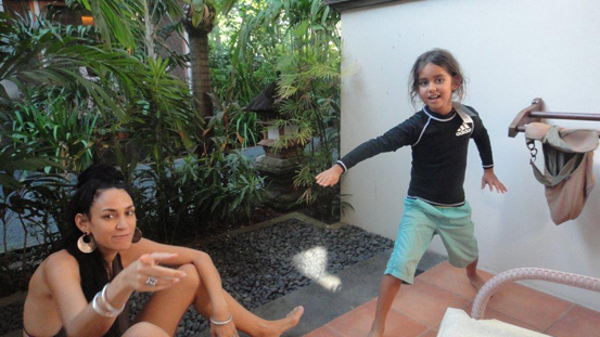 じゃーん、今回はサーフィン・デビューだぜっ。バリ島に住んでるおっしょさんミッシェルの愛息シャンティ…