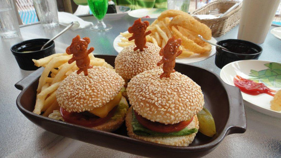 ここのプールサイドにはトレーダーピックスの出店カフェがあって、そこのランチが超可愛い❤キャラクターの…