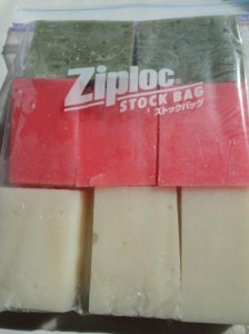 手作り石鹸ではありませぬ。夫の母が御雛様に送ってくれた、なんと菱餅カラーのお餅でございますよ。ひえ…