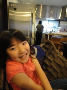 テレビがばっちし見える席に陣取って、御満悦のウリ。ダディはプーケットにビキニの撮影行ってるし、家に…