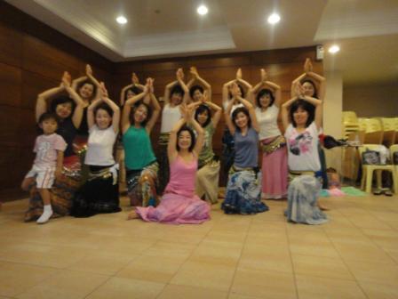 「ベリーダンス健康法」in シンガポールの最終日。女神のポーズで記念撮影をキメました。みなさんそれ…