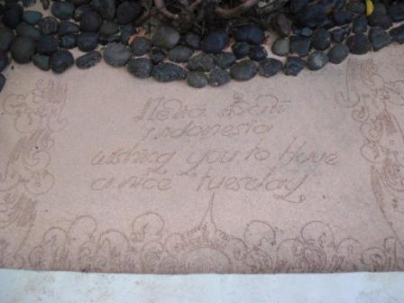 今はメリアバリという名前になっているこのホテル。ビーチからプールに向かう道に毎日「よい○曜日を!」…