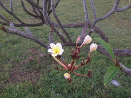 丘の上に背の低いプルメリアの木があり、ウリは朝いちでプルメリアのお花を摘みました。…