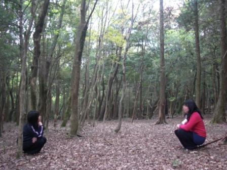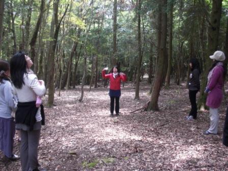 この森の番人、村山祥子さんによるネイチャーウォーク。何年も何年も、枯葉が積もった土はふかふかで…