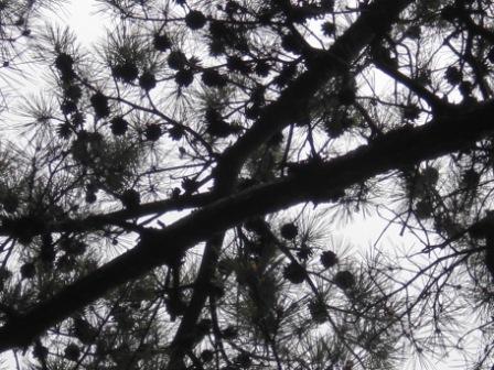 びっしり松ぼっくりがついています。これはズームで撮影してるけど、ずーっとずーっと上のほうです。…