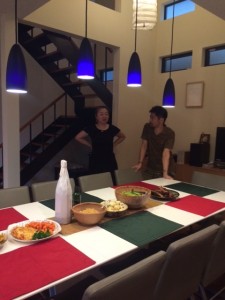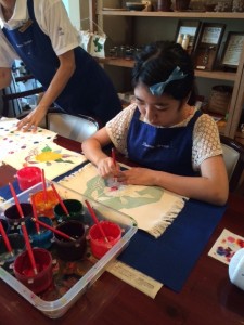 雨が降っていたので、ホテルのクラフトコーナーでウリは紅型染め、私は琉球ガラスに挑戦しました。グラ…