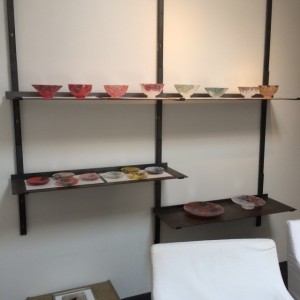 和菓子コーナーの奥には工芸作家の作品を展示するギャラリーが。ここはお客様のウェイティングルームと…