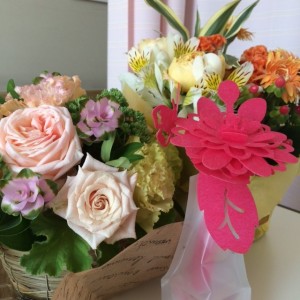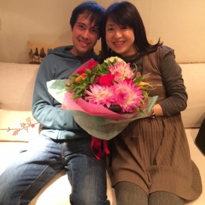 お祝いのお花、アニムス・フラワーデザインさんに、情熱の赤をテーマに作ってもらいました。デデーのチ…