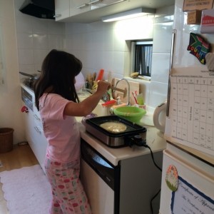 5.11朝、母の日のパンケーキを焼くためウリは朝五時半に起きました。「明日はなんにもやんなく…
