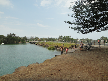 バイロンから車で二十分ぐらい行ったBrunswickという町では河口でみなさん泳いでいて、橋から…