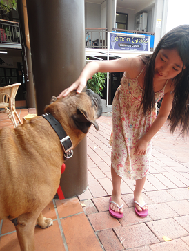 Beach Hotelの裏にあるアジア料理屋さんのワンちゃんですが、もう高齢でいつもへたっている…