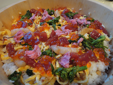 今年は京都「雲月」のちらし寿司の素を使ってみました(笑)。ちらし寿司を一から作るのは大変なの…